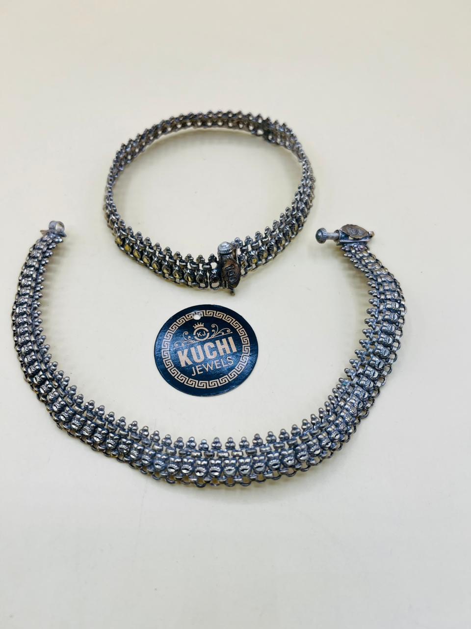 Elevate your traditional ensemble with this Antique Dull Gold Anklet Pair, expertly crafted to showcase timeless elegance. The subdued gold finish offers a vintage charm that complements both casual and festive attire. Designed for comfort and durability, these anklets add a subtle yet sophisticated touch to your look, making them an essential accessory for those who appreciate classic craftsmanship.