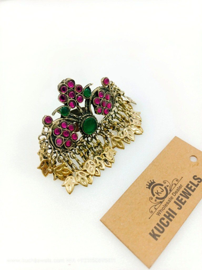 Ring is made by german silver metal with a uniqe stone sequence and golden leaf.