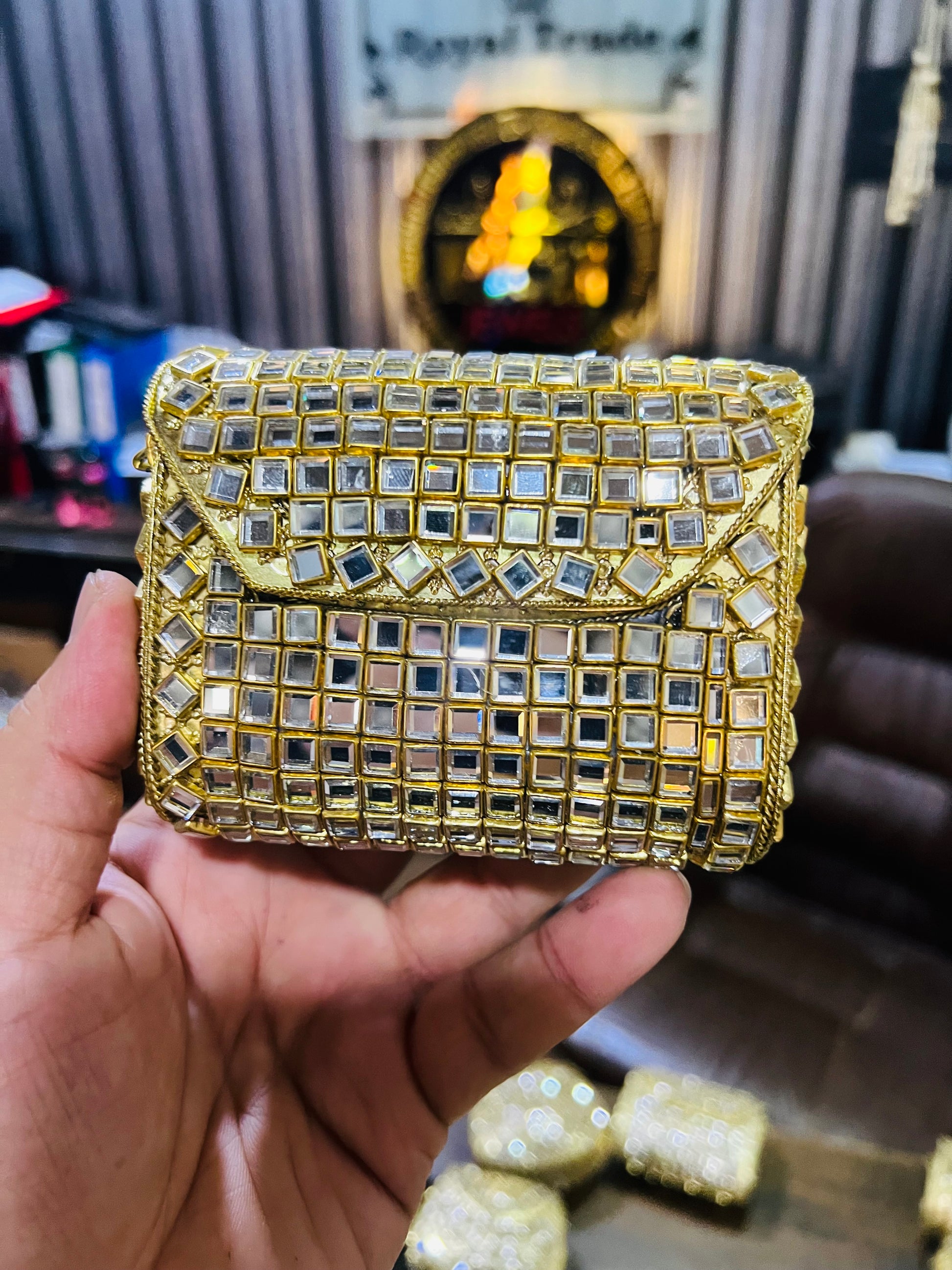 Mid Medium Kundan Golden Base Bag, Square Shape BB-S7