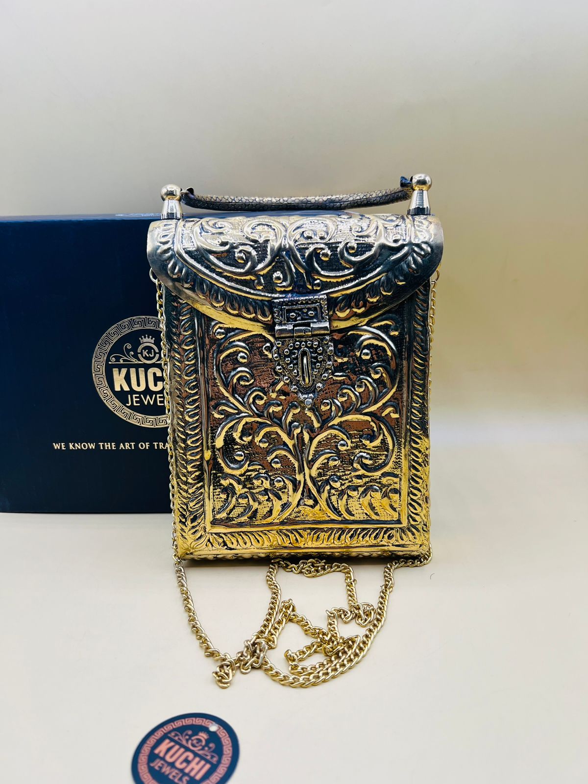 Fashion Golden Metal Bag For Mobile And Accessories