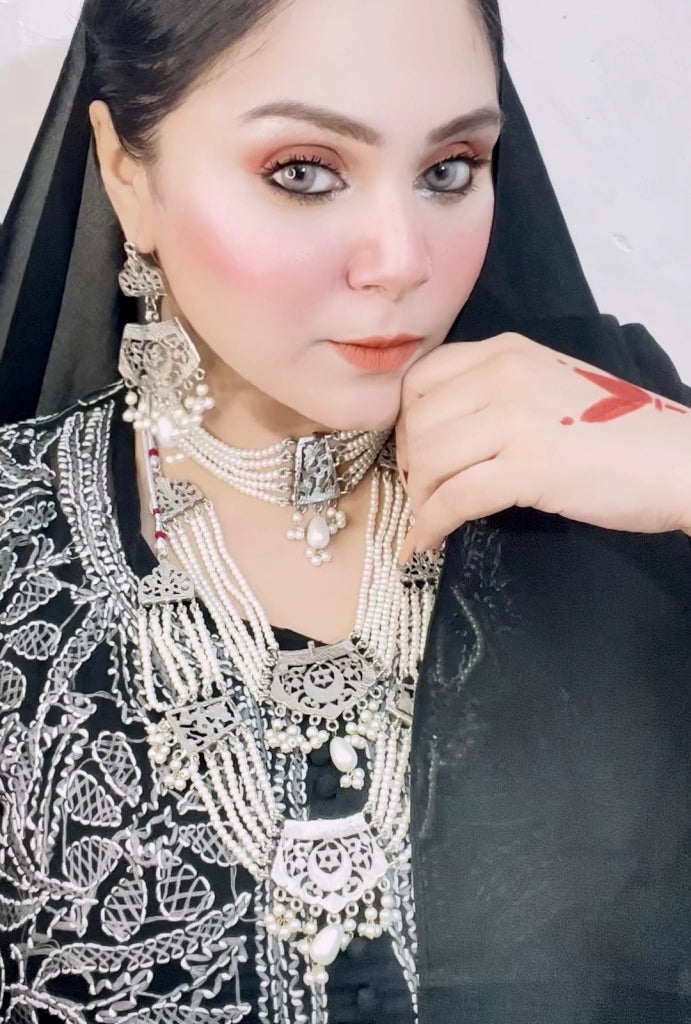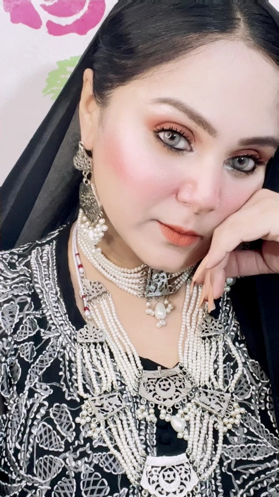 This White Pearl Mala and Double Choker Set is a versatile accessory that can be worn together for a layered look or separately to suit different occasions and styles. The white pearls exude elegance and can complement a wide range of outfits, making this set a valuable addition to any jewelry collection. Whether you’re attending a special event or simply want to enhance your everyday style, this set offers a touch of timeless beauty and sophistication.