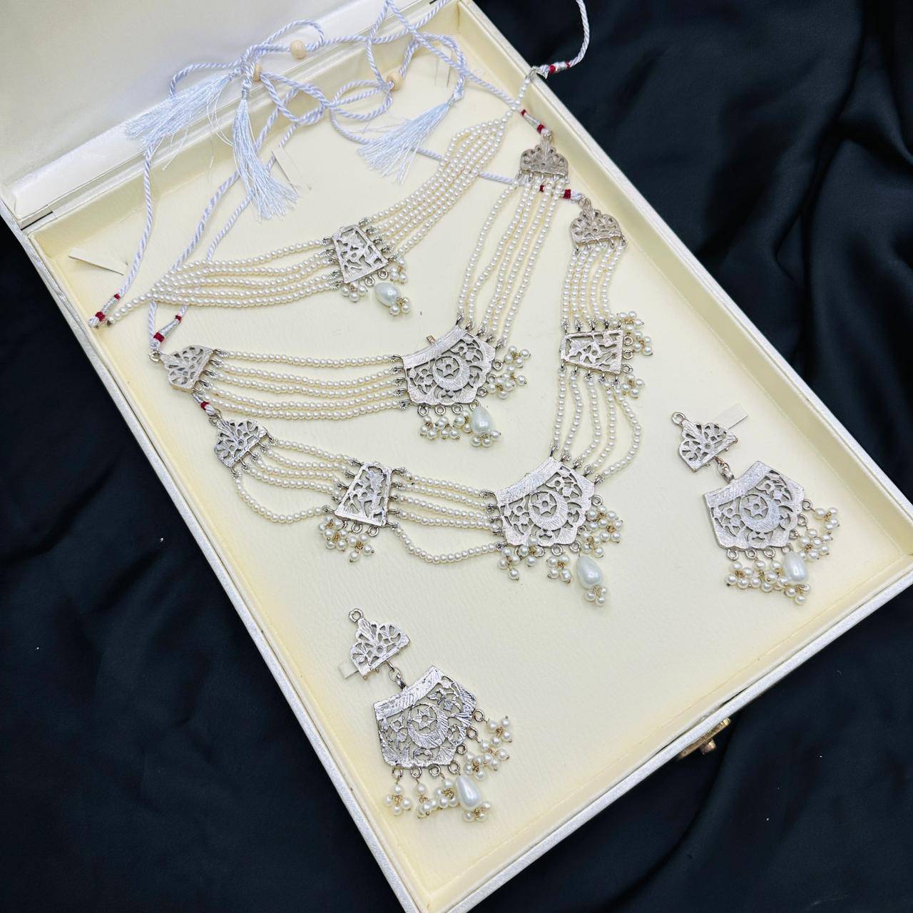 White Pearl Mala And Double Choker Set